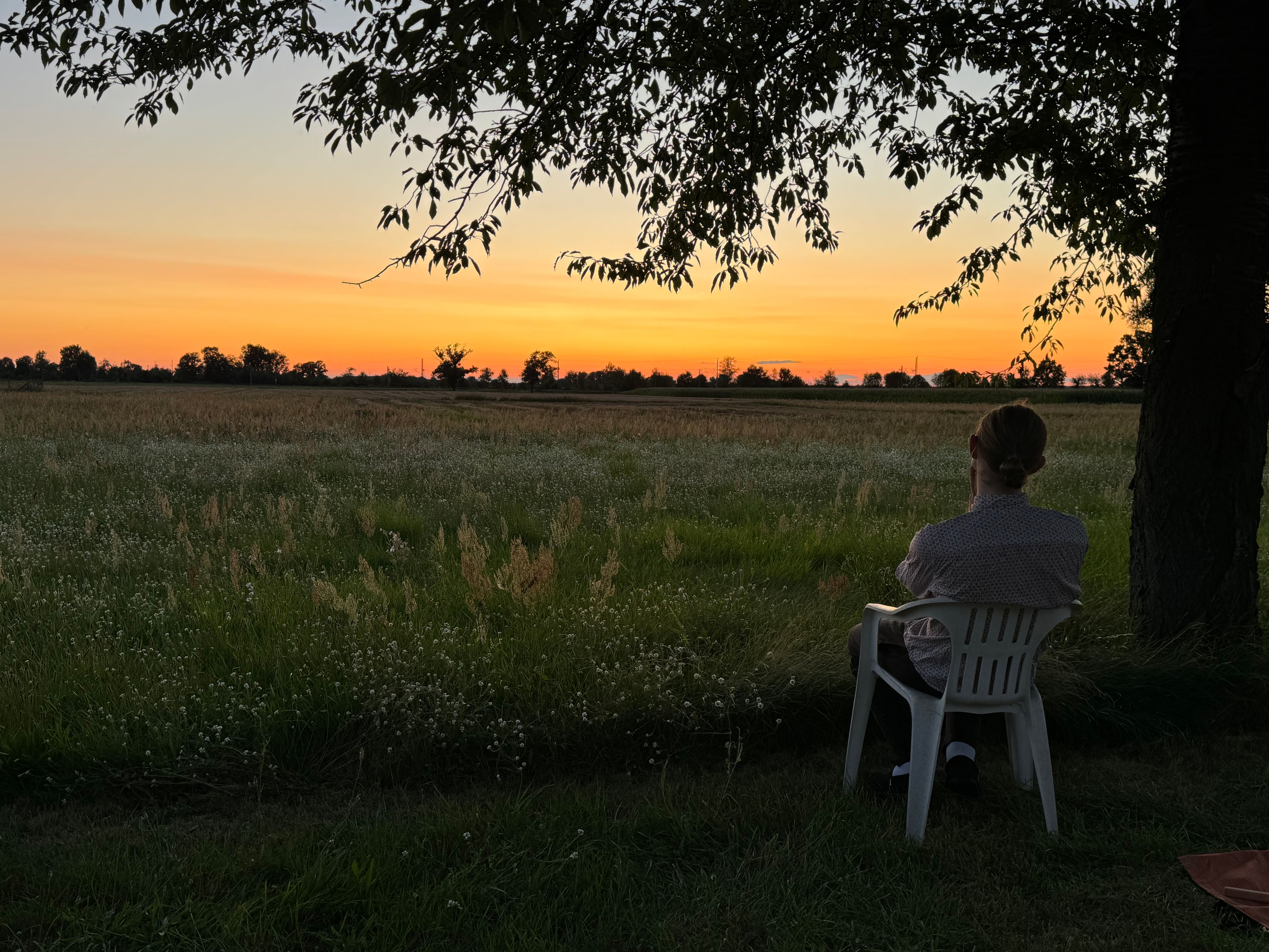 Eine Wiese voll Zelten mit der Sonne im Hintergrund